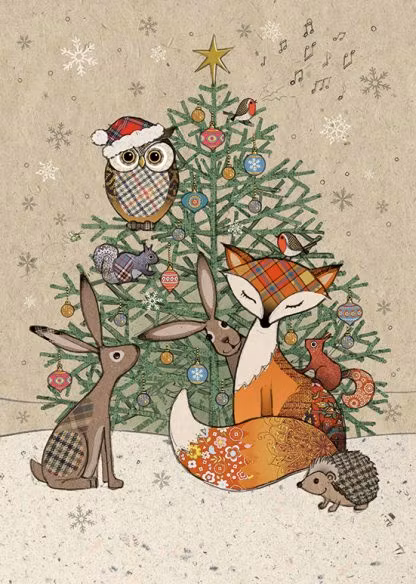 Engelskt Julkort Fox & Friends Kort och Kuvert Blank inside.