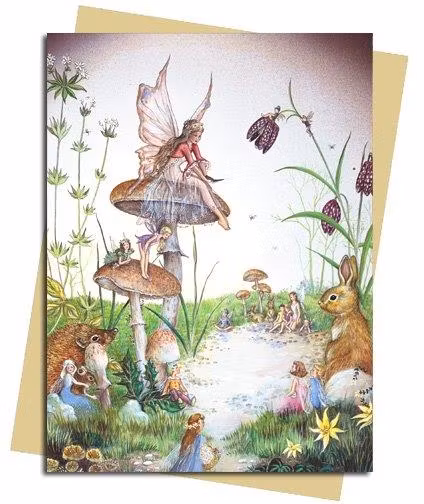 Dubbelvikt kort med trollskt motiv i fina pastellfärger och med glitter på. Kortet är blankt inuti och kommer med ett kuvert i guldfärg.Storlek: 12,5 x 17 cm