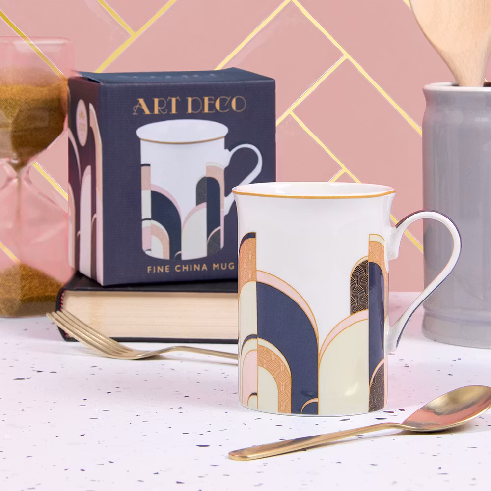 Tillverkad i fint porslin med vackert Art Deco-mönster. Tål både maskindisk och mikrovågsugn.