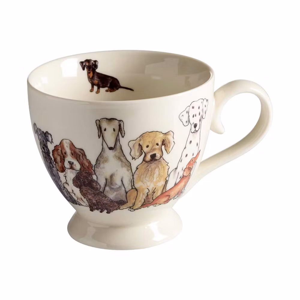 Frulostmugg i porslin med hundmotiv