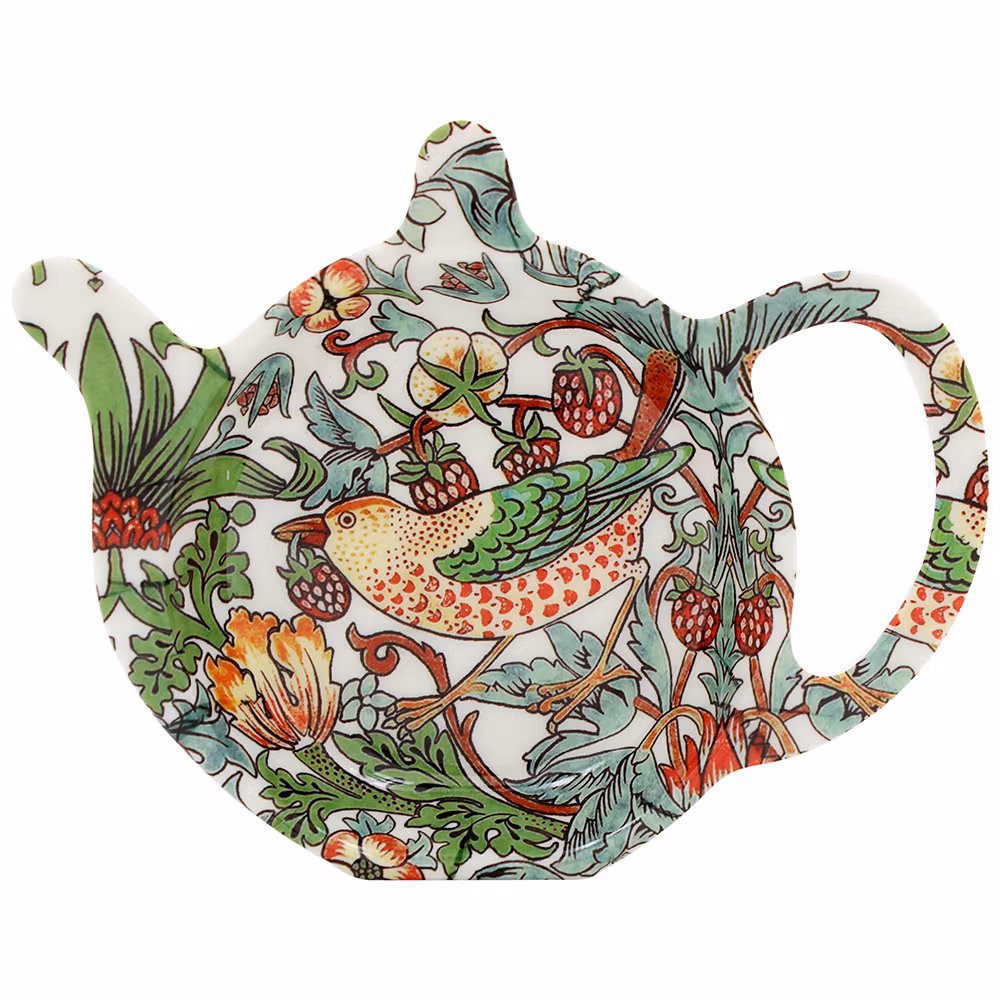 Tepåsfat med William Morris populära mönster White Strawberry Thief. Mått (cm): 13 x 10 x 2