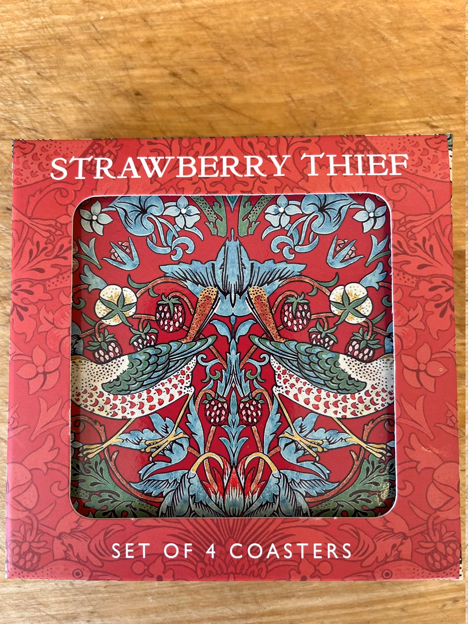 4 st glasunderlägg med kork i William Morris populära mönster Strawberry Thief
