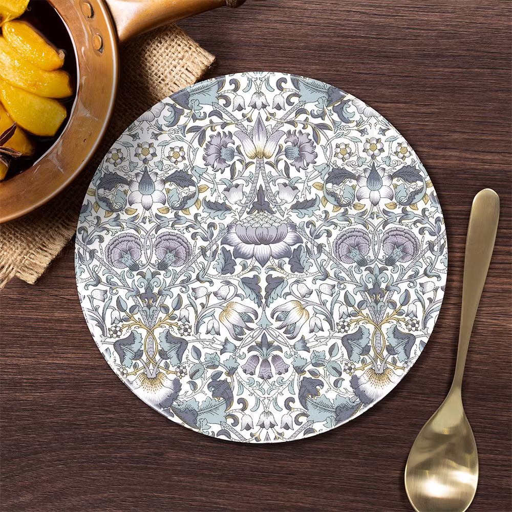 Ett snyggt grytunderlägg ur serien Lodden, designad av William Morris. Tillverkad i fint porslin med en undersida i kork. Ca 16 cm i diameter och värmetestad i upp till 200°C.