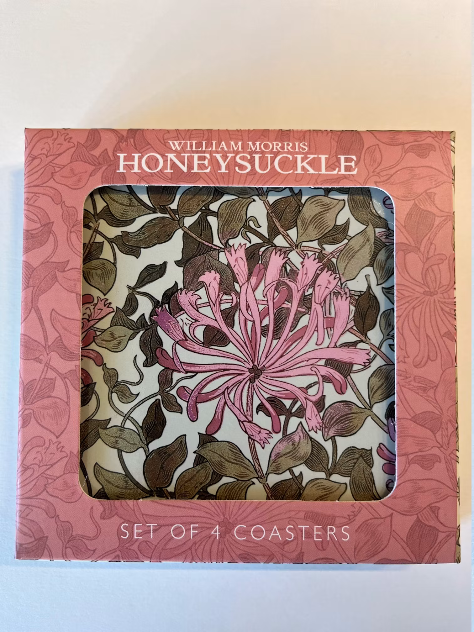 4 st glasunderlägg med kork i William Morris populära mönster Honeysuckle